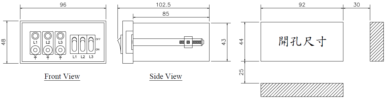 鈑金開孔尺寸 (mm) Cutout Dimensions |