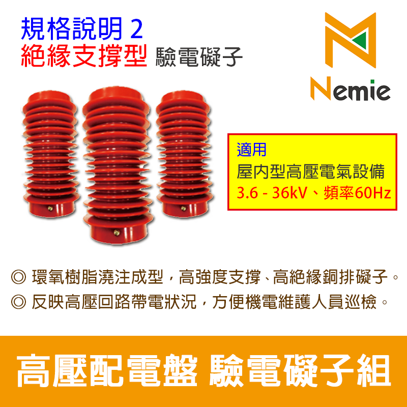 適用於屋內額定電壓3.6 - 36kV、頻率60Hz之高壓電氣設備中,與驗電礙子搭配使用,可以反映高壓回路帶電狀況,以方便機電維護人員巡檢。
