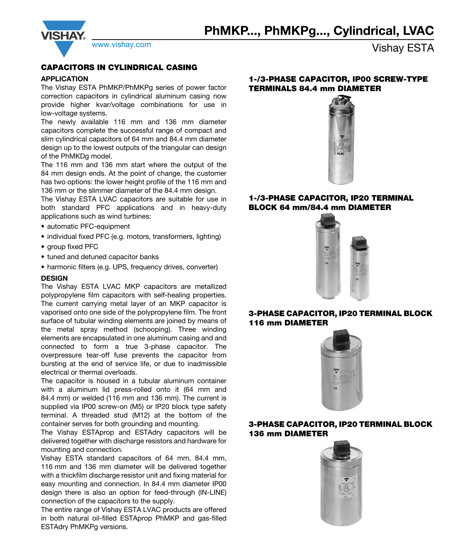 德國VISHAY ESTA為電機電子之電容器專業製造商,品牌擁有百年歷史,旗下產品之配電盤專用「油式防爆型電容器」擁有比傳統乾式電容器之安全係數更高、壽命更長等優勢,且油介質已非以前PCB油,德國VISHAY ESTA均採用新進可分解之環保天然植物油,無任何毒性且可分解於自然環境中,為真正環保又實用之電力進相電容器。